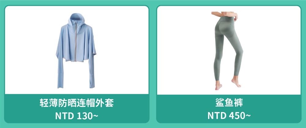 炽热的夏天已来临,为了保持白皙的皮肤,台湾女性消费者们都在寻找轻薄的防晒罩衫,特别是下图这种能同时遮挡面部和手臂的连帽外套,销量高涨。此外,近期健身、瑜伽等锻炼方式在女性群体流行,舒适贴身的鲨鱼裤攀上热搜榜前位。