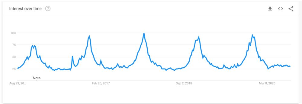 *Google数据中,Shopping类目下“Beanie”的搜索热度趋势图