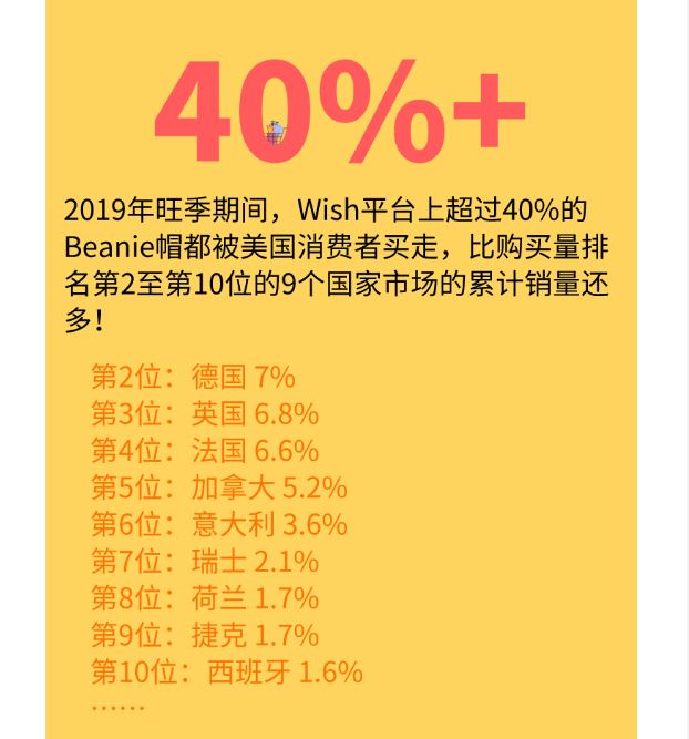 美国是Wish平台最大的市场,相信你也基本猜到美国是Beanie帽最大的市场了,但是美国的购买量有多大呢?