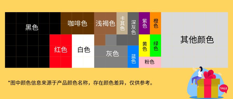说明:图中颜色信息来自于抽样订单的产品颜色名称,存在颜色差异,仅供参考。