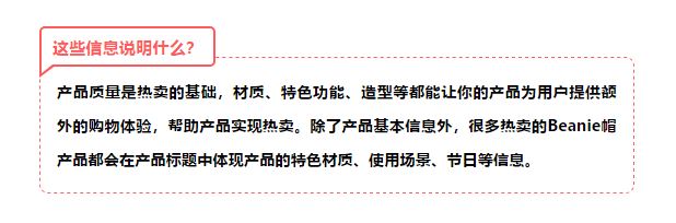 上述三种2019年旺季期间销售过万的Beanie帽款式,都在各个方面有自己的特色。但在三种款式的产品都在产品质量、材质等方面满足了消费者的期待,也就是说,产品质量是热卖的基础。