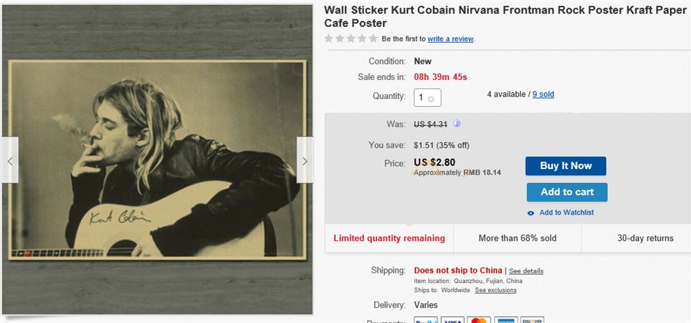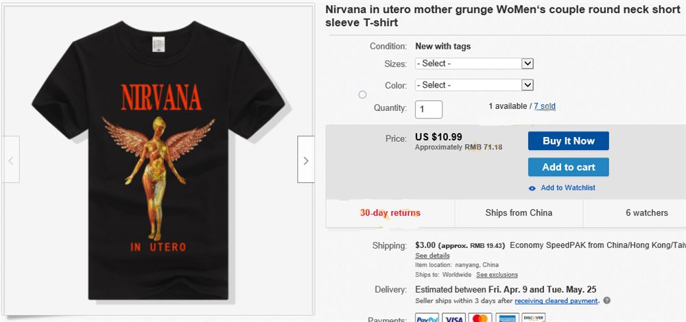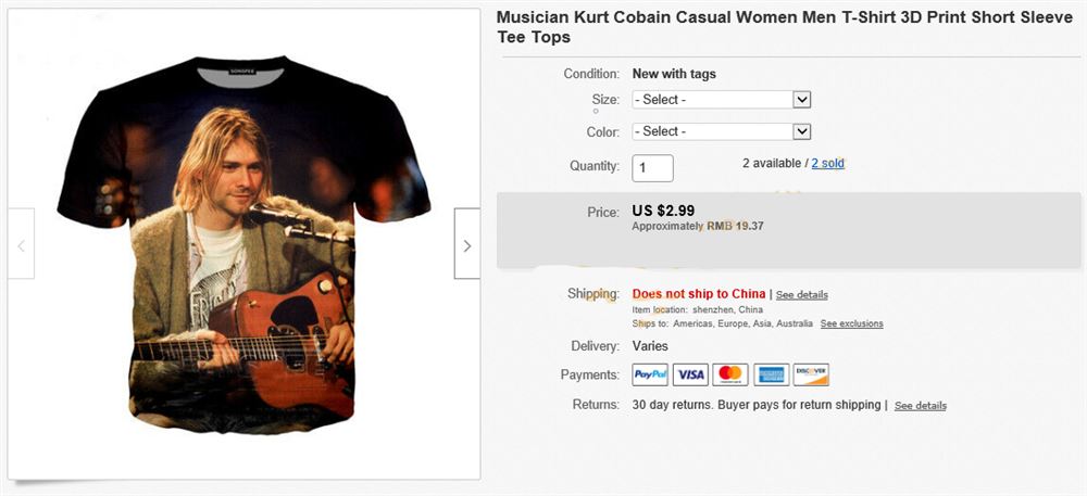 刊登标题绝对不能直接使用Kurt Cobain,产品上不要印有他的形象: