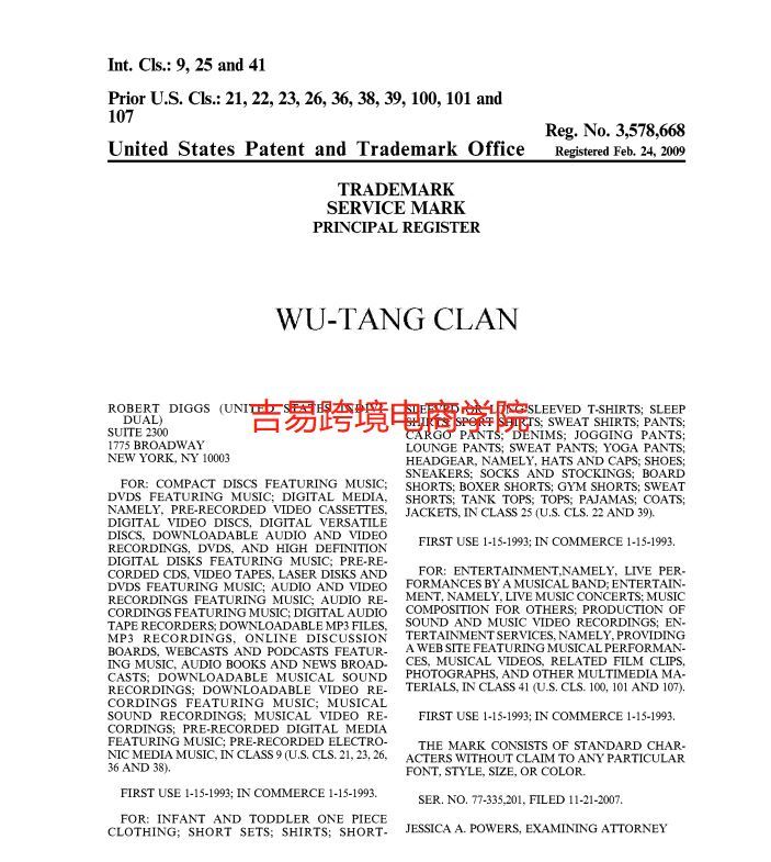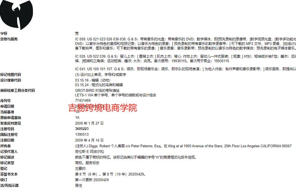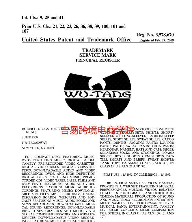 文字商标WU-TANG CLAN、WU-TANG 、WU WEAR 等不要使用,相关的图形LOGO也不要使用。